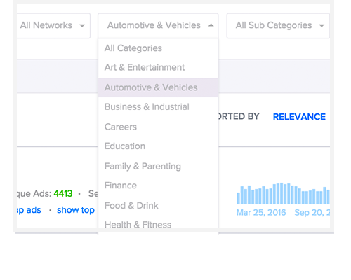 Adbeat Categories allow you to filter the top advertisers on any network by a specific market. You'll be able to find new advertisers, publishers, and prospects in your market. You'll also be able to scout out relevent advertisers in other markets, plus uncover profitable new niches and products.